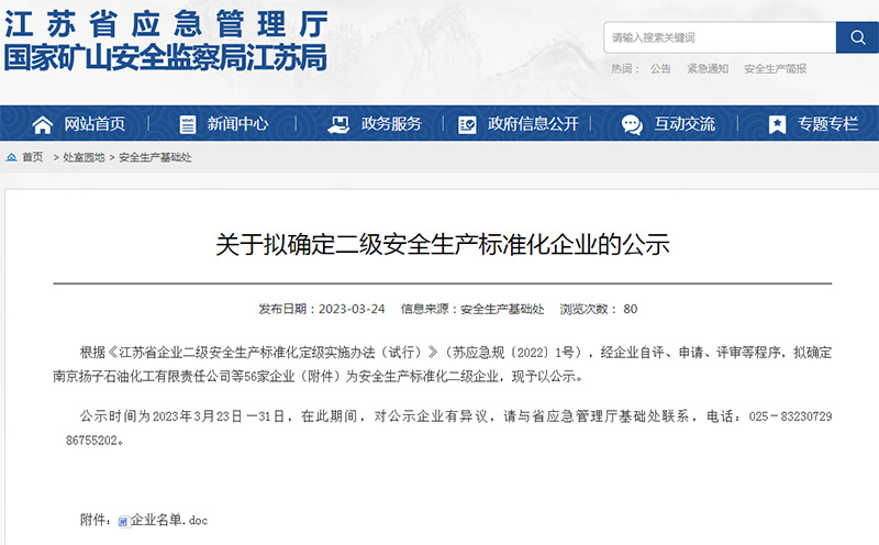 后續,我公司對評審組提出的不符合項按照隱患整改“五定”原則制定了整改方案并落實整改。31日,評審組再次組織專家對不符合項的整改開展復查,評審組確認了所有不符合項整改閉環。2023324日江蘇省應急管理廳網上發布公示。