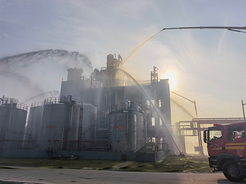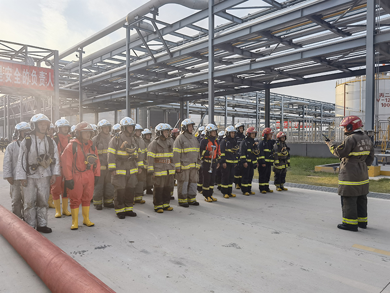 公司董事長劉準(zhǔn)現(xiàn)場組織協(xié)調(diào),各救援人員分工明確、配合密切,全過程演示了報警接警、啟動預(yù)案、聯(lián)動響應(yīng)等場景,泰興市經(jīng)濟開發(fā)區(qū)應(yīng)急指揮中心、公安、醫(yī)療、消防、環(huán)保、電力等部門參與聯(lián)動響應(yīng),最終成功解除所有危險因素,指揮組宣布演練結(jié)束。